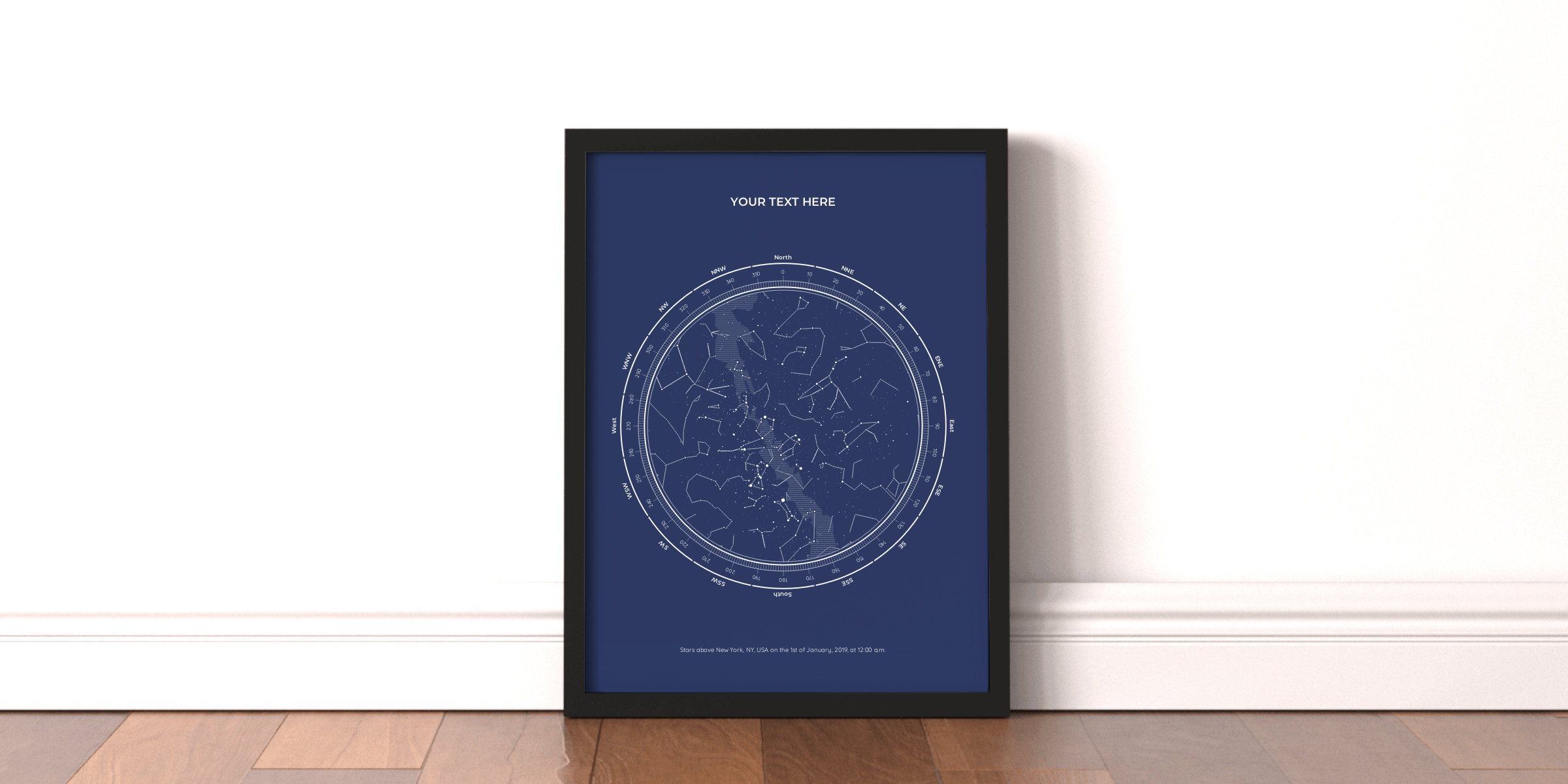 Stars above New York, NY, USA on the 1st of January, 2019, at 12:00 a.m.